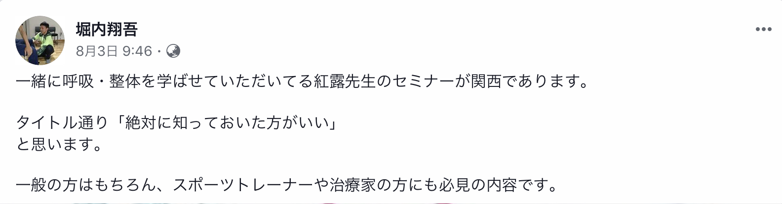 もし呼吸養生塾が講座でシェアしていることに、興味がある、気になっているという方は、来月以降も呼吸養生塾に触れて頂く機会を設けておりますので、まず一度受けてみるのが早いです。